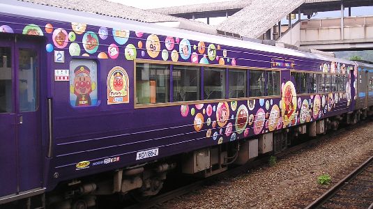 ↑「アンパンマンカー」車内に子どもの遊びスペースがあります。 阿波池田駅にて … 徳島から乗車後