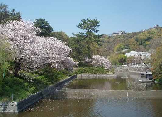 ↑松山城〜道後温泉/松山城下の桜。
