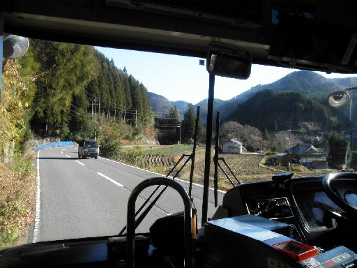 ↑路線バス【豊後中村駅→大吊橋中村口】の車窓から/豊後中村駅から乗った路線バス。